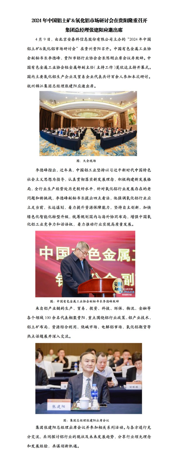 2024年中國鋁土礦&氧化鋁市場研討會在貴陽隆重召開 集團總經理張建陽應邀出席