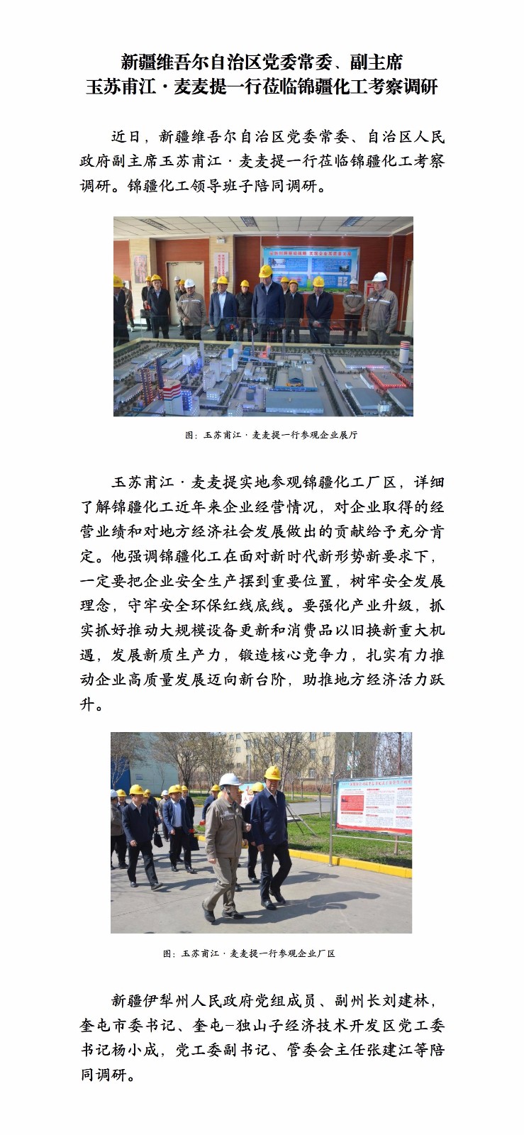新疆維吾爾自治區黨委常委、副主席 玉蘇甫江·麥麥提一行蒞臨錦疆化工考察調研