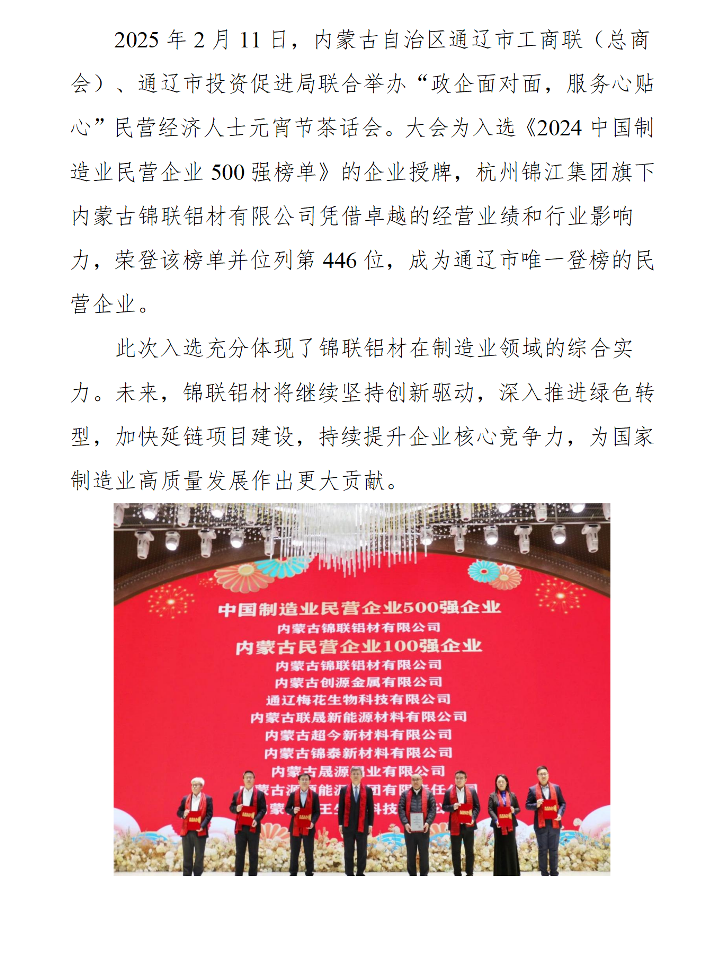 錦聯(lián)鋁材榮登2024中國制造業(yè)民營企業(yè)500強(qiáng)榜單